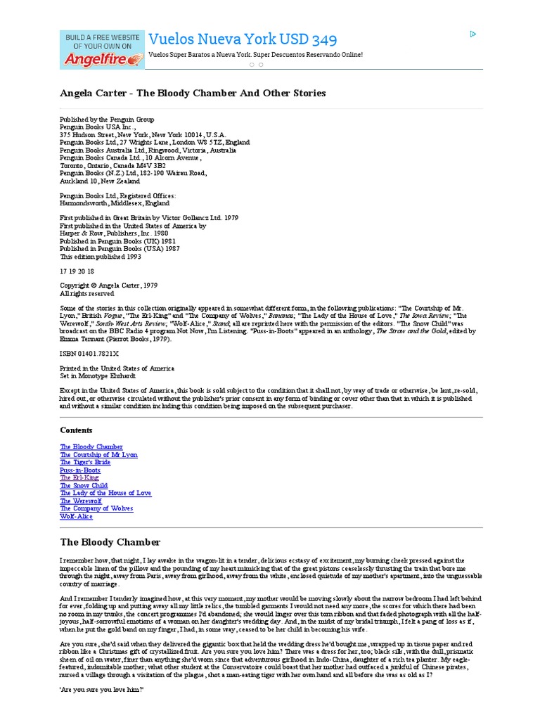 . Notes Item Preview remove-circle Share or Embed This. The bloody chamber Angela Carter. I remember how that night I lay awake in the wagon-lit.