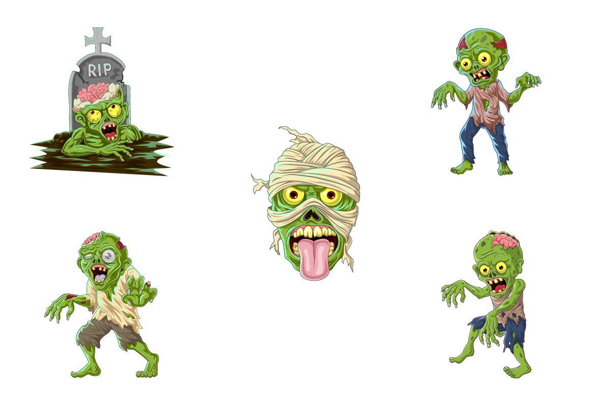 Set Of Thirteen Cartoon Halloween Zombie